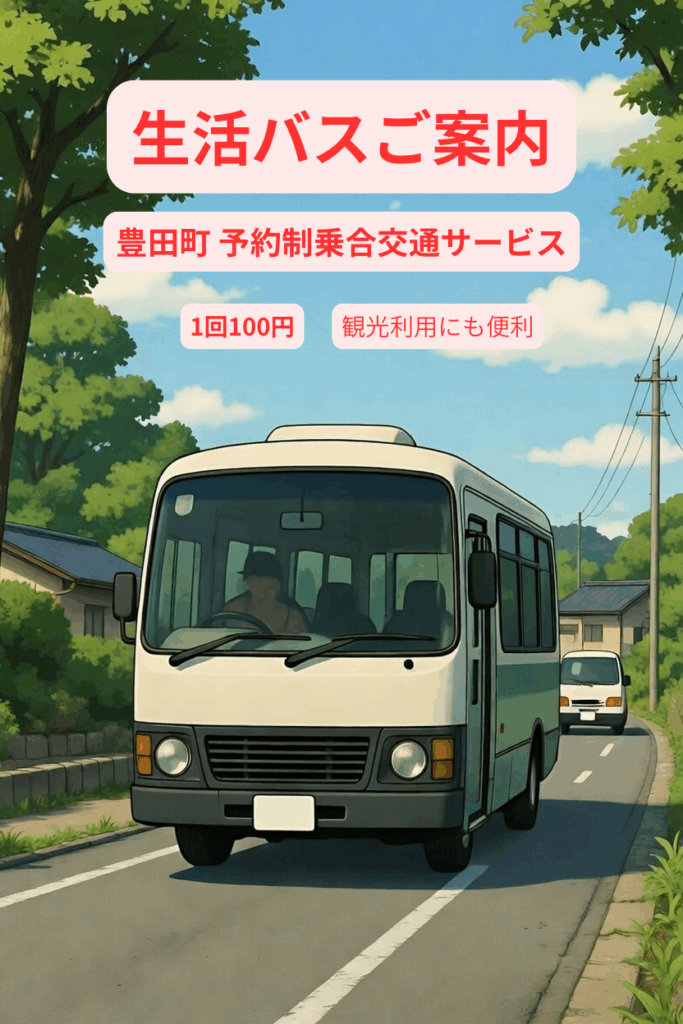 下関市豊田町を運行する予約制の乗合交通サービス「生活バス」のご案内です。